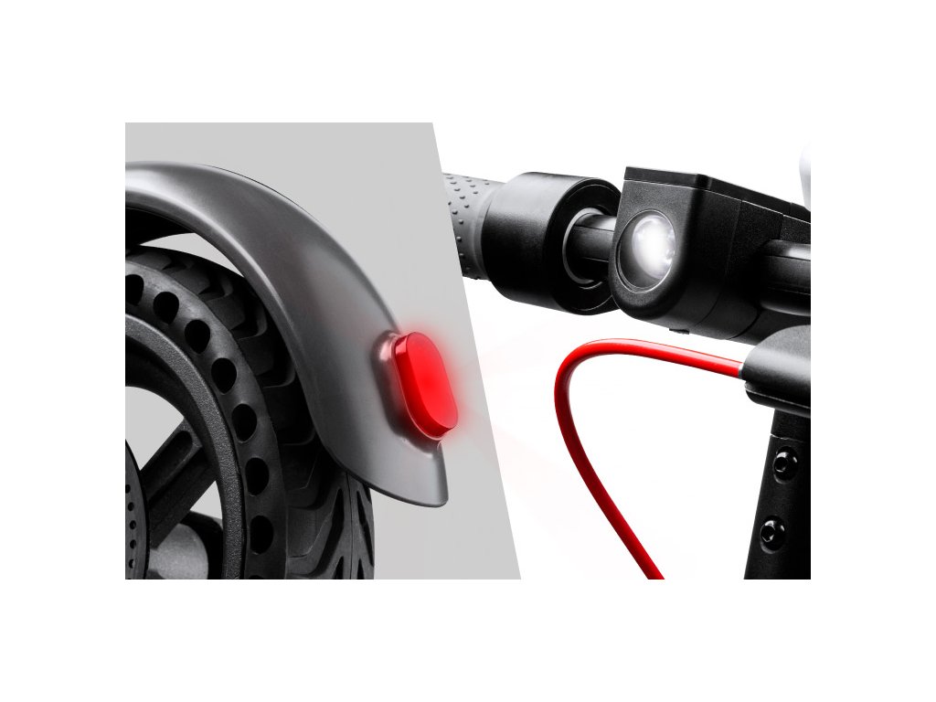 A Fast Wheels PRO robogóval nem csak kényelmes, de biztonságos is a vezetés. A két fényvisszaverőnek köszönhetően - az eszköz elején és hátulján - mindig jól látható leszel az úton, amikor a robogóval közlekedsz, még sötétedés után is.