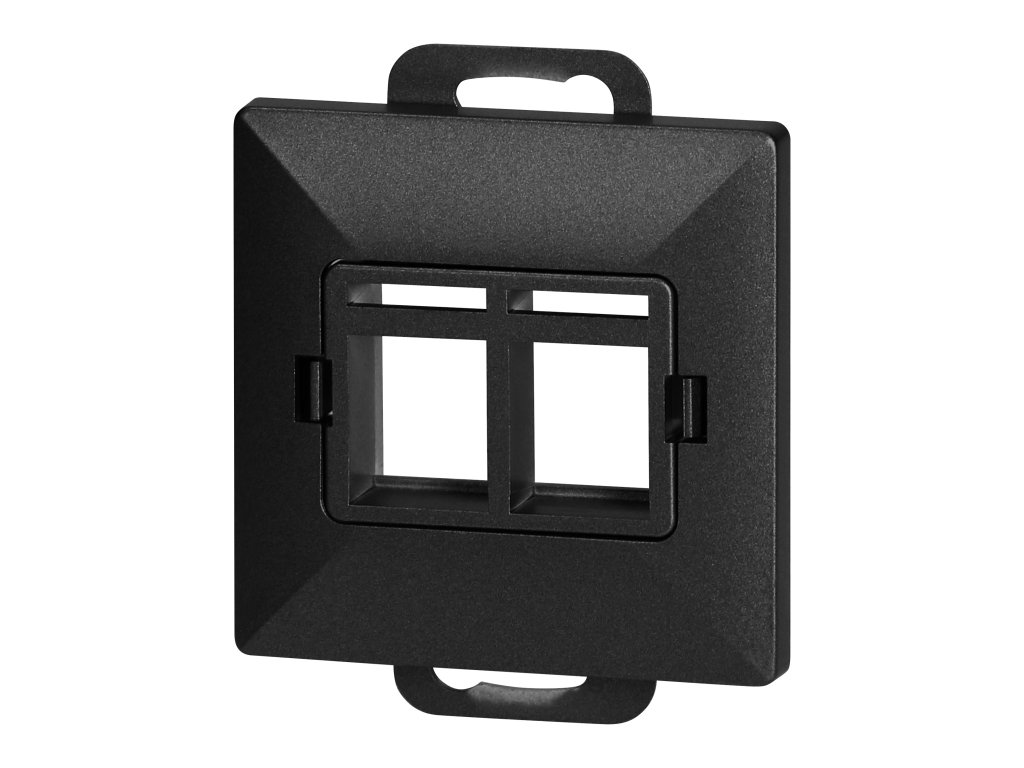 Előlap + Dupla tele-komp. RJ-45 aljzat gyöngy, PC+ARJ45/P2, fekete