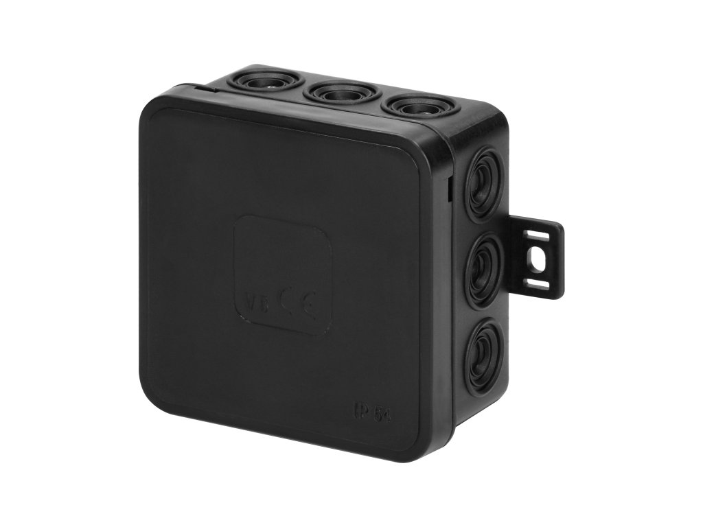 Az IP54 elosztódoboz megbízható megoldást jelent az elektromos telepítéséhez. Fekete színével és masszív kivitelével ideális különféle alkalmazásokhoz, legyen szó akár beltéri, akár kültéri használatról.