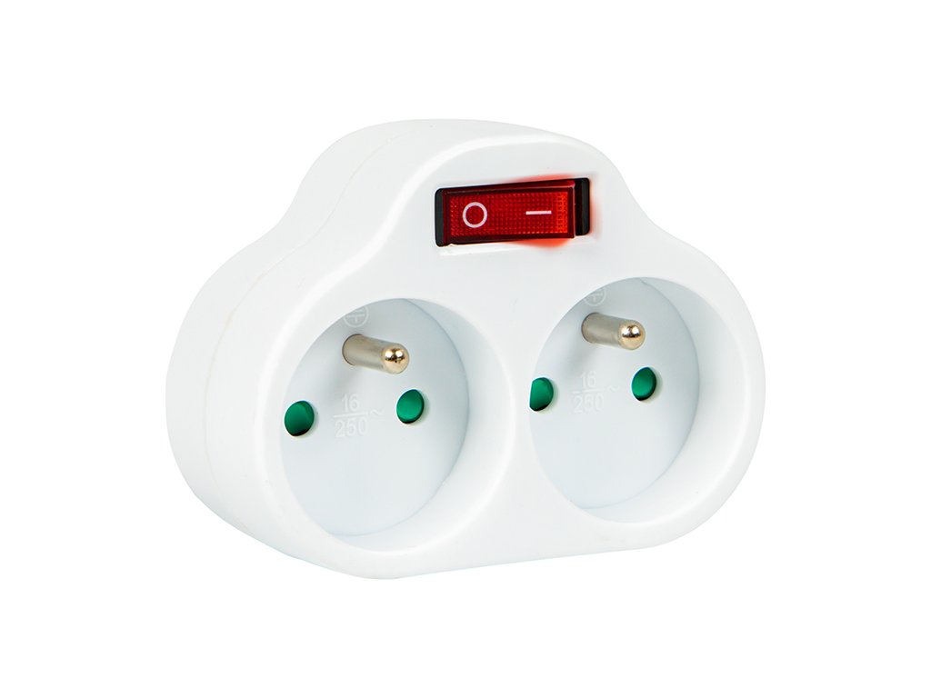 Fehér színű kapcsolós elosztó 2 konnektorral