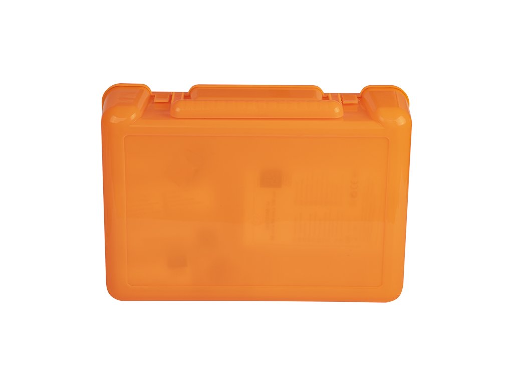 Személygépkocsikhoz és teherautókhoz tervezett autós elsősegélycsomag. Az elsősegélycsomag tartalma megfelel a DIN13164 szabványnak