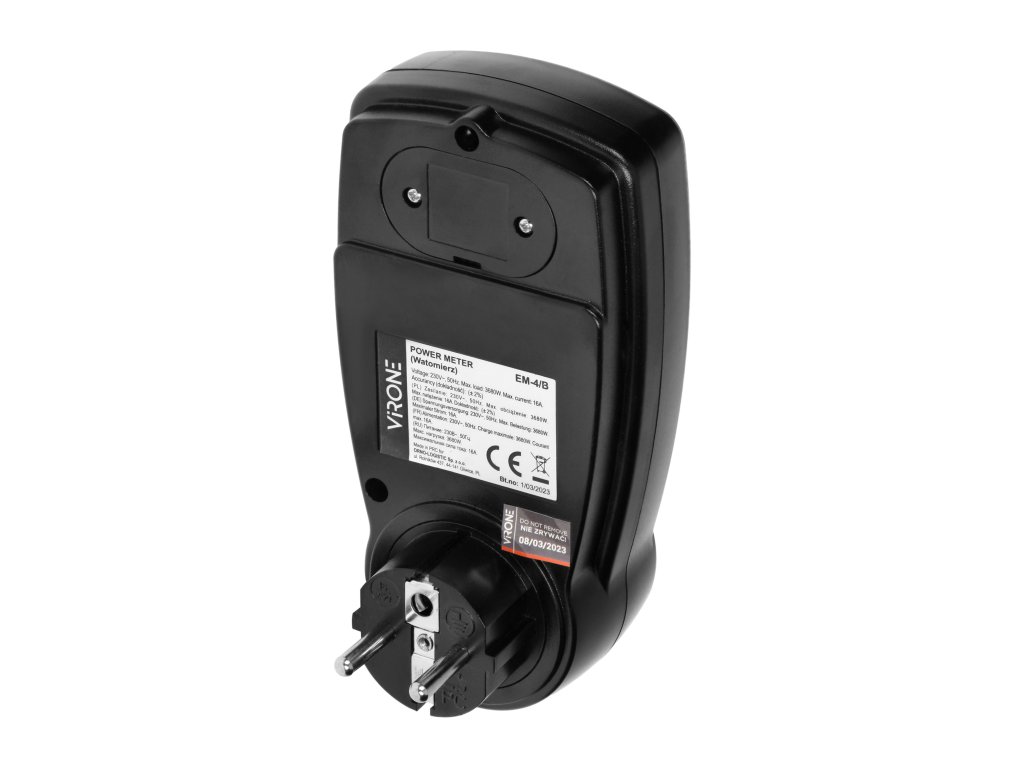 Az LCD kijelzős energiafogyasztás-mérő, fekete