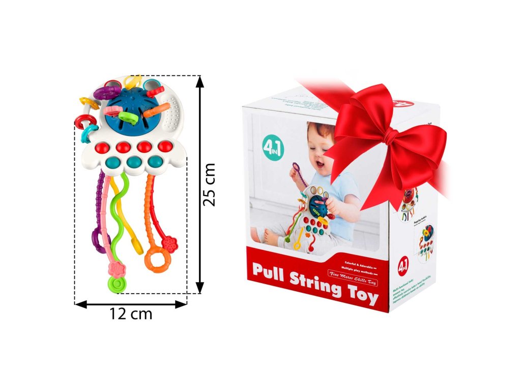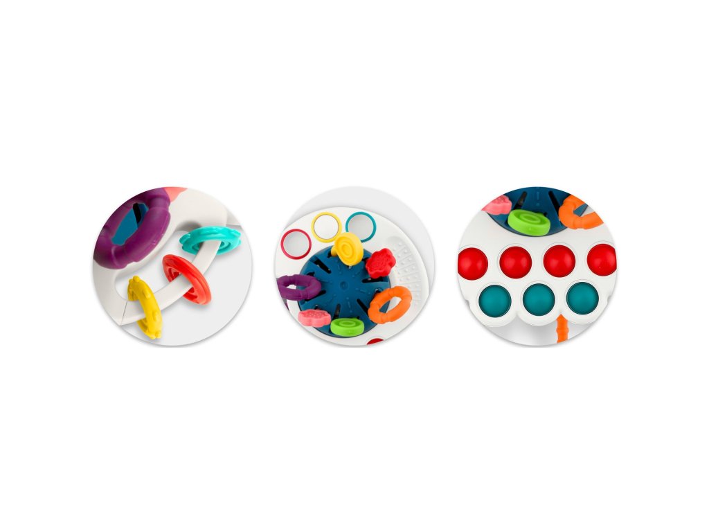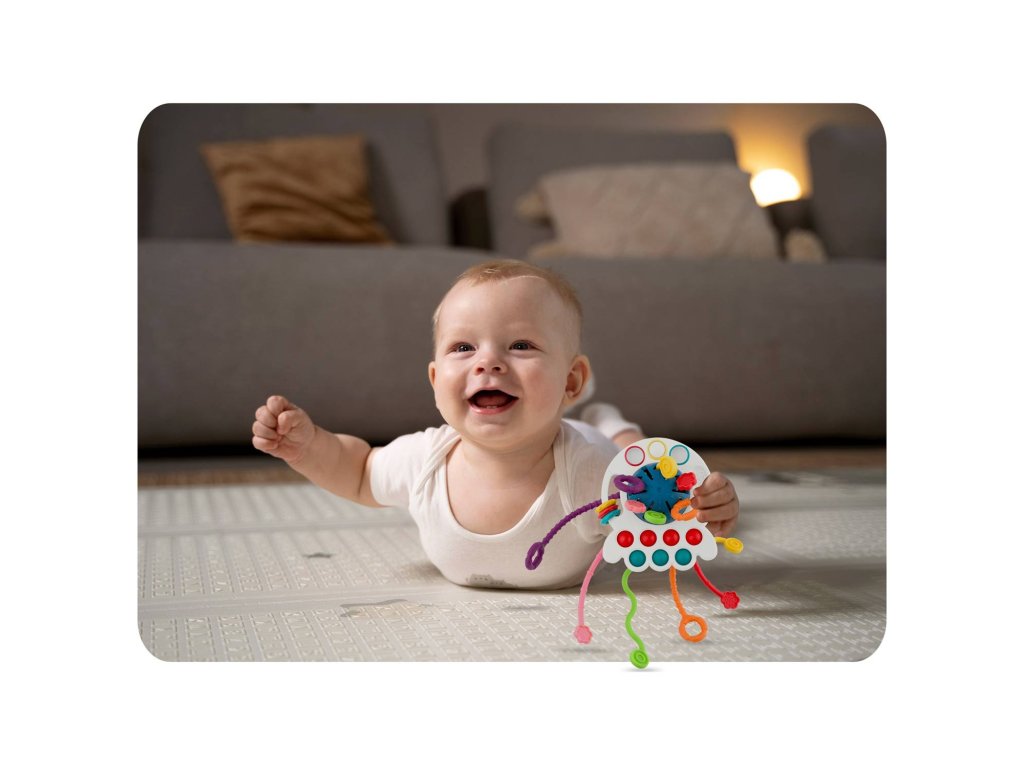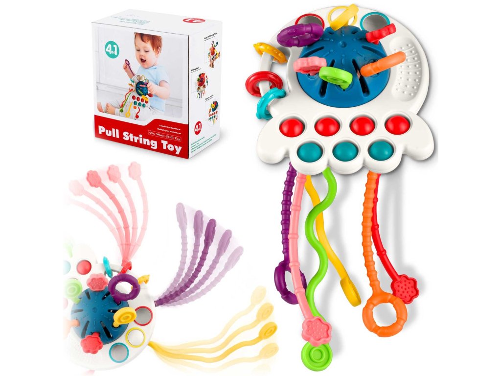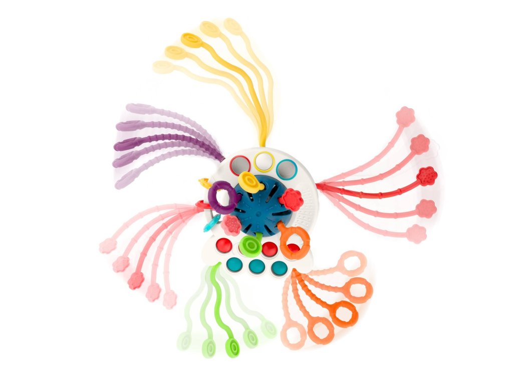 Ajáték szilikonpöttyökkelrendelkezik , amelyeket összenyomhatsz, elemeket csúsztathatsz, és minden elem színes .Ez a játék biztosan elvarázsolja gyermekedet. A fogantyúk úgy vannak kialakítva, hogy a gyermek kényelmesen és intuitív módon meg tudja fogni a játékot.