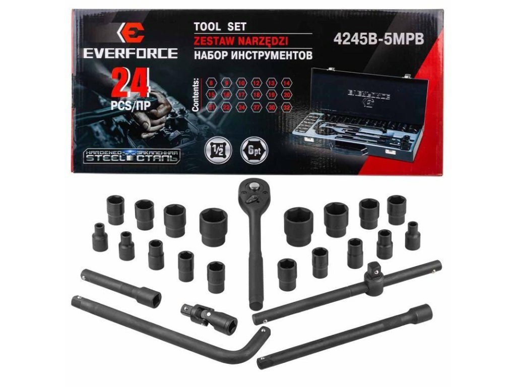 EVERFORCE 1/2" 6-szögletű szerszámkészlet 8-32mm 24 ELEME + TÁROLÓ KÉSZLET