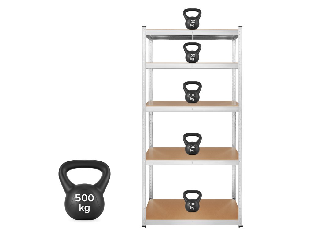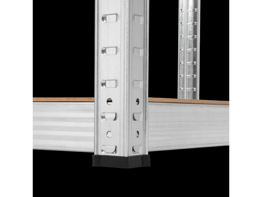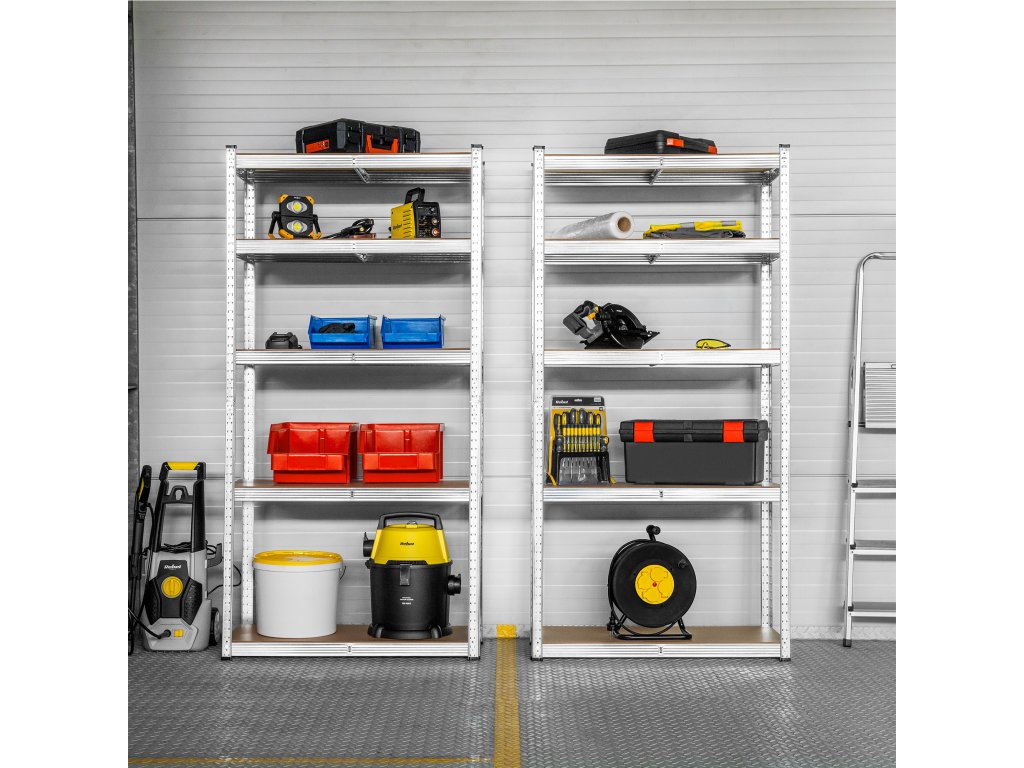 A polcrendszer 5 állítható polccal rendelkezik, amelyek alapján igényeid szerint szabadon konfigurálhatod a műhely vagy raktár terét. A polcok közötti távolságot is igényeid szerint állíthatod, hogy különböző méretű tárgyak férjenek el rajta.