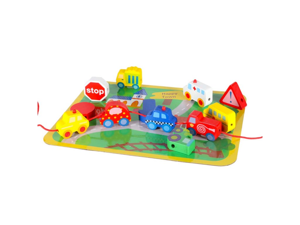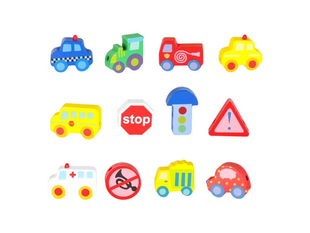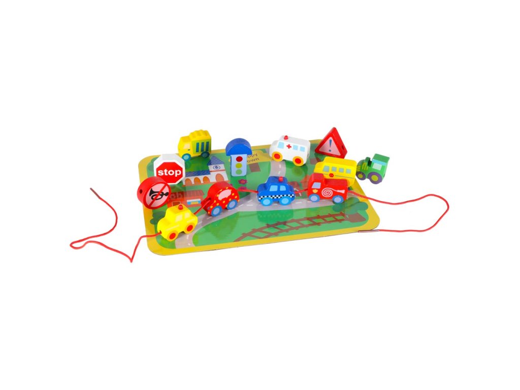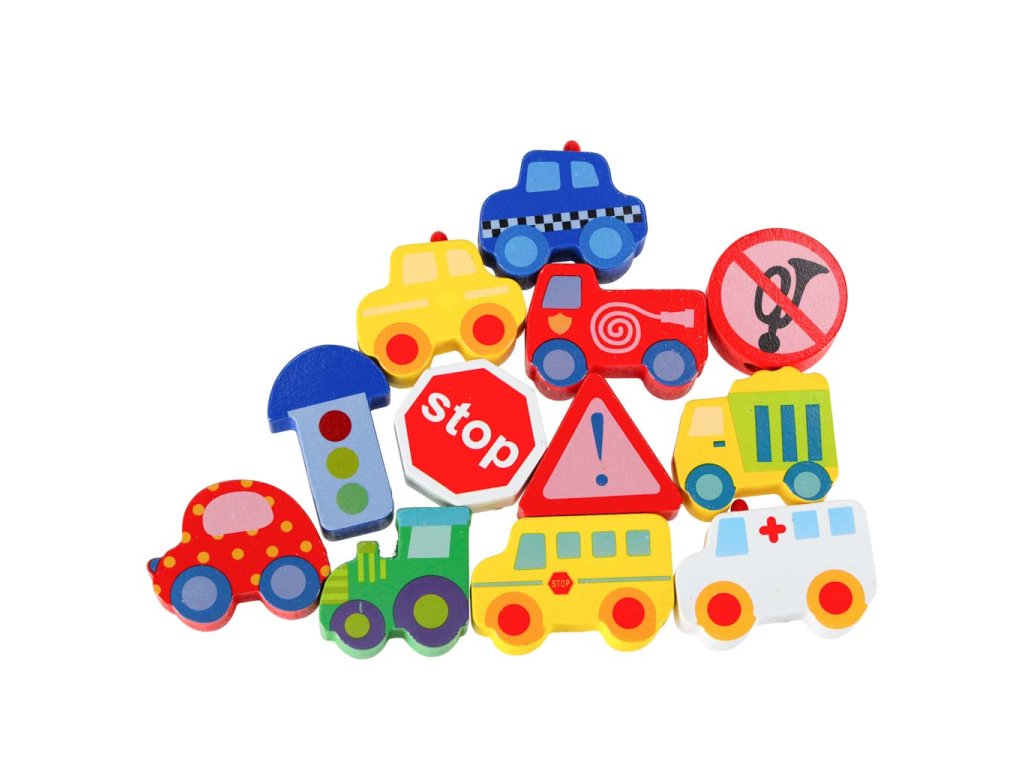 Fából készült fűzhető blokk városi járművekkel