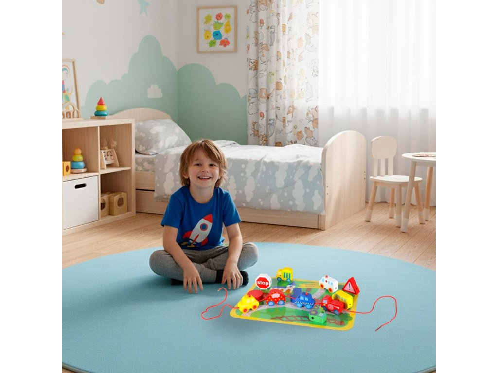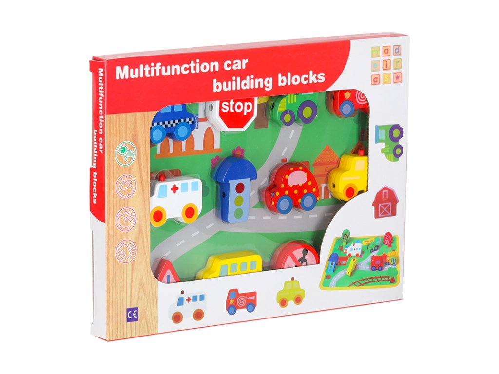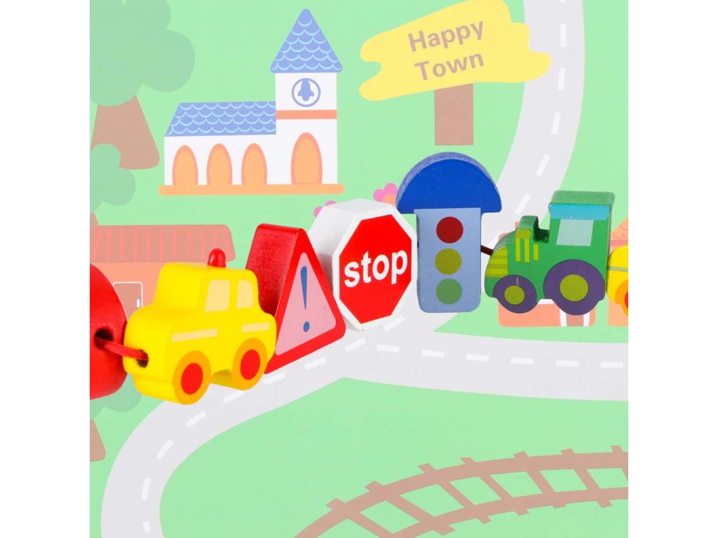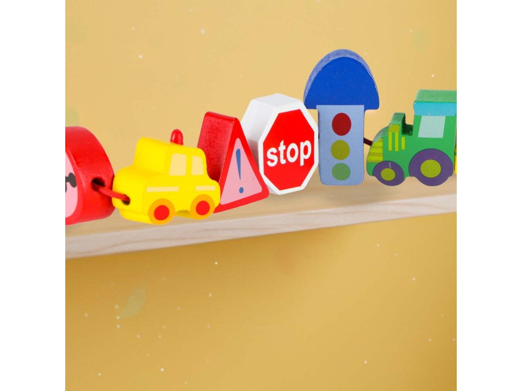Fából készült fűzhető blokk városi járművekkel