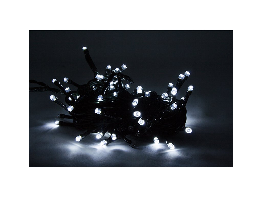 Hermetikus LED karácsonyfavilágítás hideg fehér színben, villanófénnyel, beltéri és kültéri használatra.