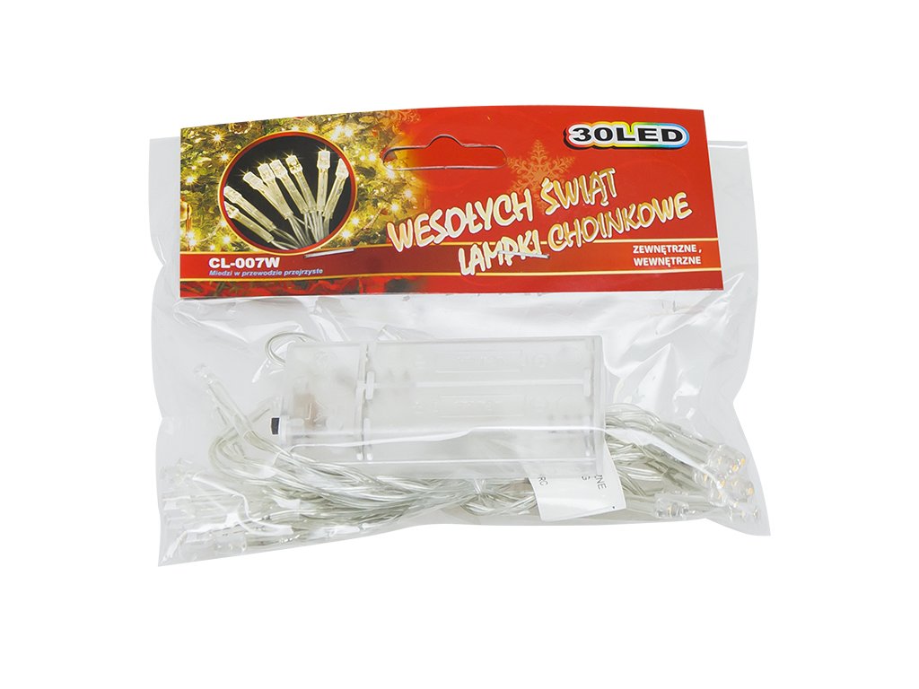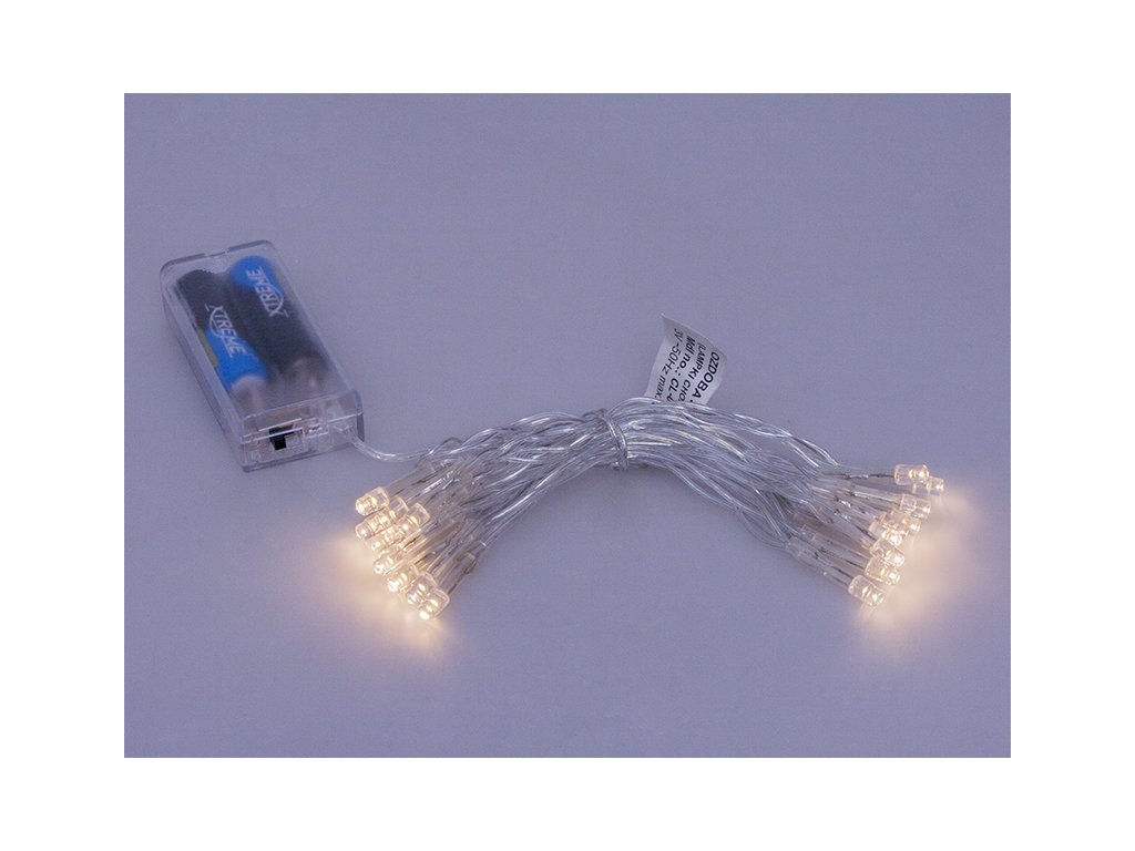 Forró fehér LED karácsonyfavilágítás elemmel működtetve.