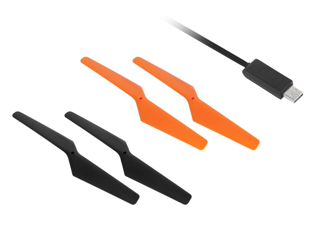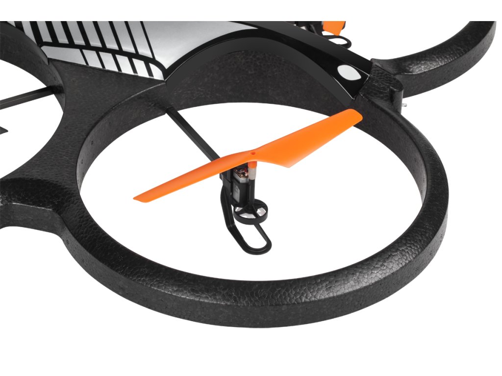 6 tengelyes giroszkópos stabilizátor Műrepülés Hosszú távirányító hatótávolság (2,4 GHz); akár 100 m 3 sebességmód Iránytű funkció Dobásból indítható Automatikus trimm funkció 2 vezérlési mód Kültéri használatra Távirányító tápellátása: 4x 1,5 V AA elem 2 db 7,4 V Li-poly akkumulátor Töltési idő: ~150 perc.