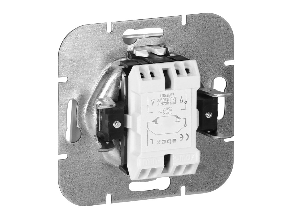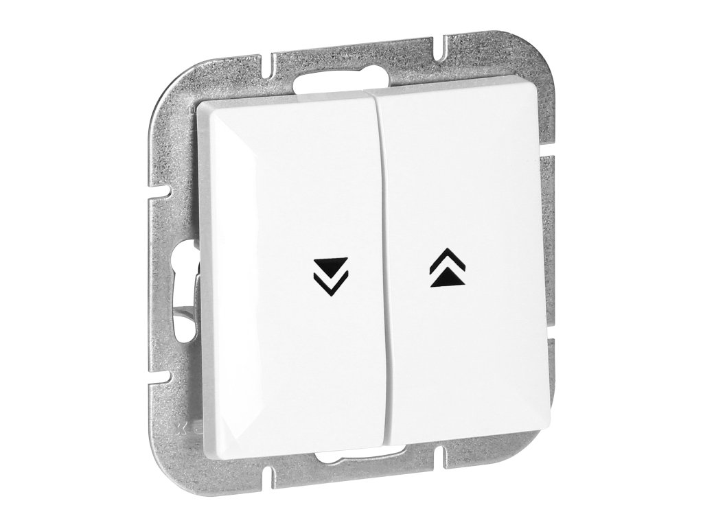 Moduláris sorozat szimmetrikus keretlemezes rendszerrel (1-, 2-, 3-, 4-, 5-modulos), amely lehetővé teszi a termék vízszintes és függőleges helyzetben történő szerelését. A modern gyorscsatlakozó mechanizmus (a vezetékeket közvetlenül a házba kell tolni) biztosítja a vezetékek biztonságos és balesetmentes telepítését és eltávolítását. Az aljzatok hagyományos csavaros csatlakozásokkal vannak felszerelve. A kapcsok belső kialakítása garantálja a vezetékek biztonságos kapcsolódását 0,75 mm?-től 2,5 mm?-ig. Erős és robusztus rögzítőlap rács és kiváló minőségű önbehúzó elemek biztosítják a stabil és biztonságos telepítést a dobozban. Speciális rugóelemek megkönnyítik a keret házba illesztését.A redőny kapcsoló süllyesztett szerelésre van kialakítva. Használják redőnyök vagy árnyékolók működtetésére, ezért általában redőnykapcsolónak is nevezik. Ez egy olyan kapcsoló, melynek funkciója a redőny mechanizmusának motorját aktiválni, ami lehetővé teszi annak leengedését vagy felhúzását. A kapcsoló két gombbal rendelkezik (fel és le) és egy biztonsági berendezéssel, amely megakadályozza, hogy egyszerre legyenek aktiválhatók. Beltéri használatra alkalmas (IP20).