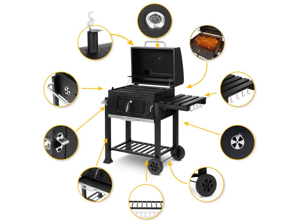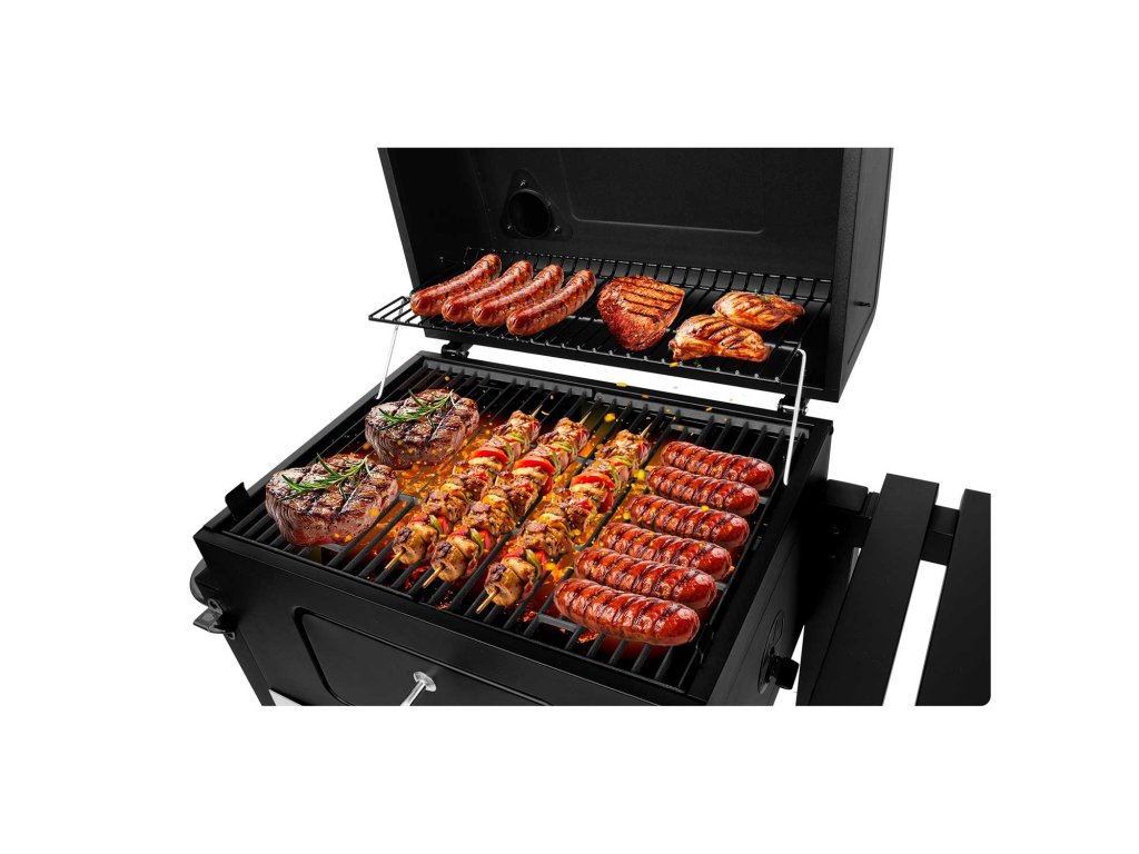 Fedél: lehetővé teszi a grillezést különböző időjárási körülmények között, és jobb állandó hőmérséklet megtartását teszi lehetővé a grill belsejében, ami fontos a hosszú főzés során.