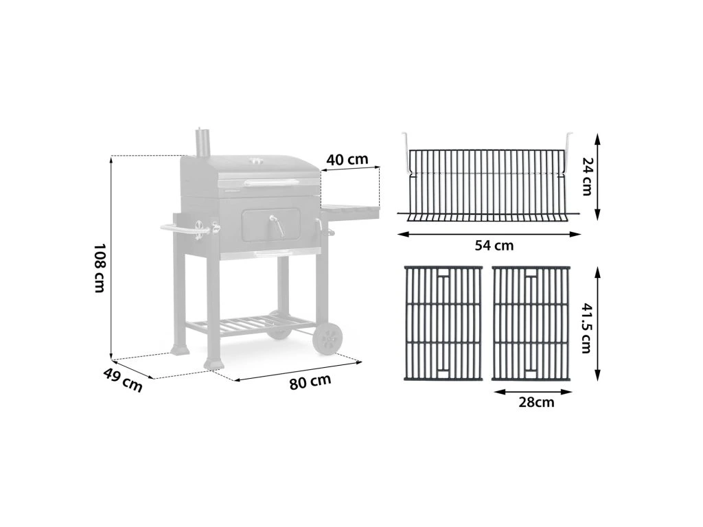 - Erős és tartós, 2 részes öntöttvas rostély, méretek: 41,5 x 28 cm.