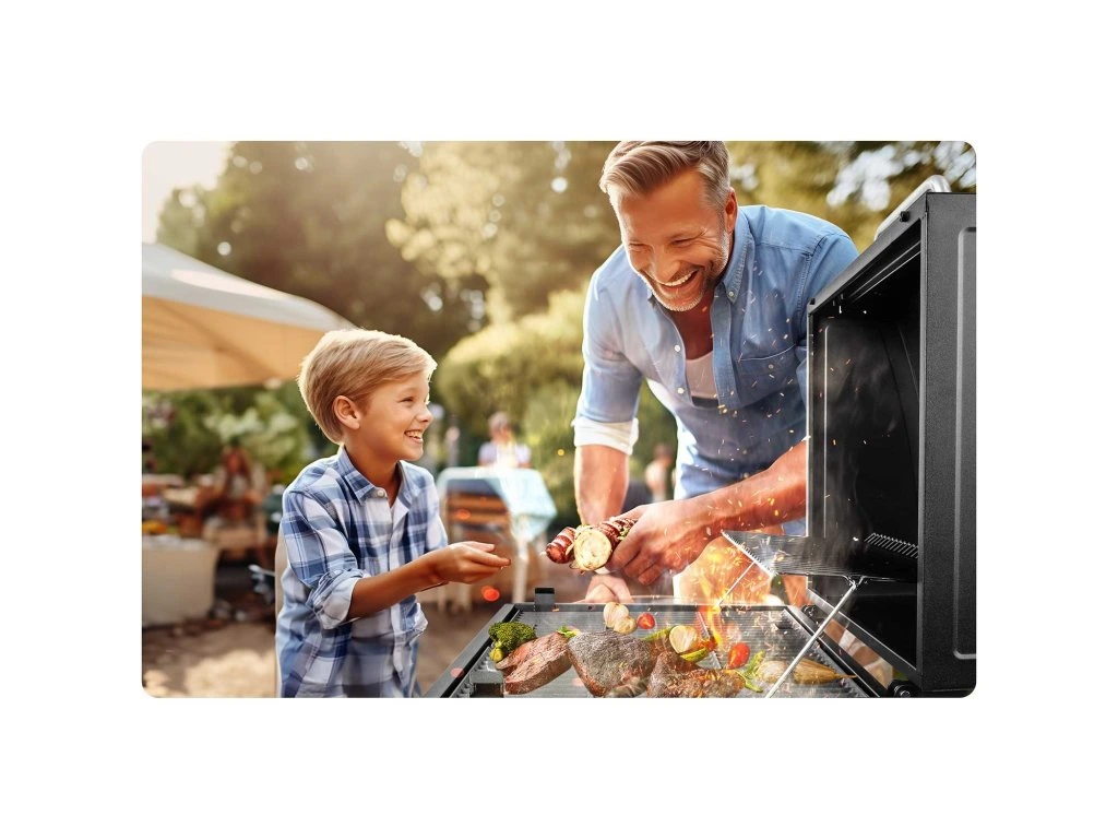 Beépített hőmérő: Lehetővé teszi a grill belső hőmérsékletének pontos nyomon követését, ami kulcsfontosságú a különböző ételek pontos elkészítéséhez.