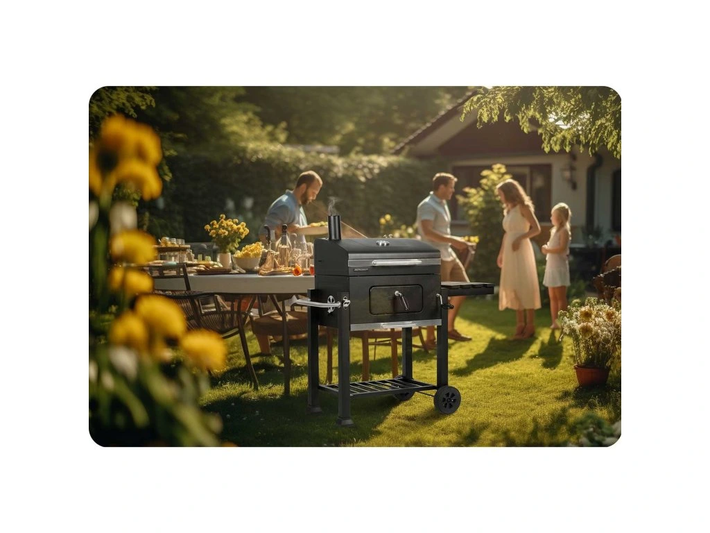 Kerekek: könnyítik a grill áthelyezését, ami különösen akkor hasznos, ha szeretné megváltoztatni helyét a teraszon, a kertben vagy kültéri eseményeken.