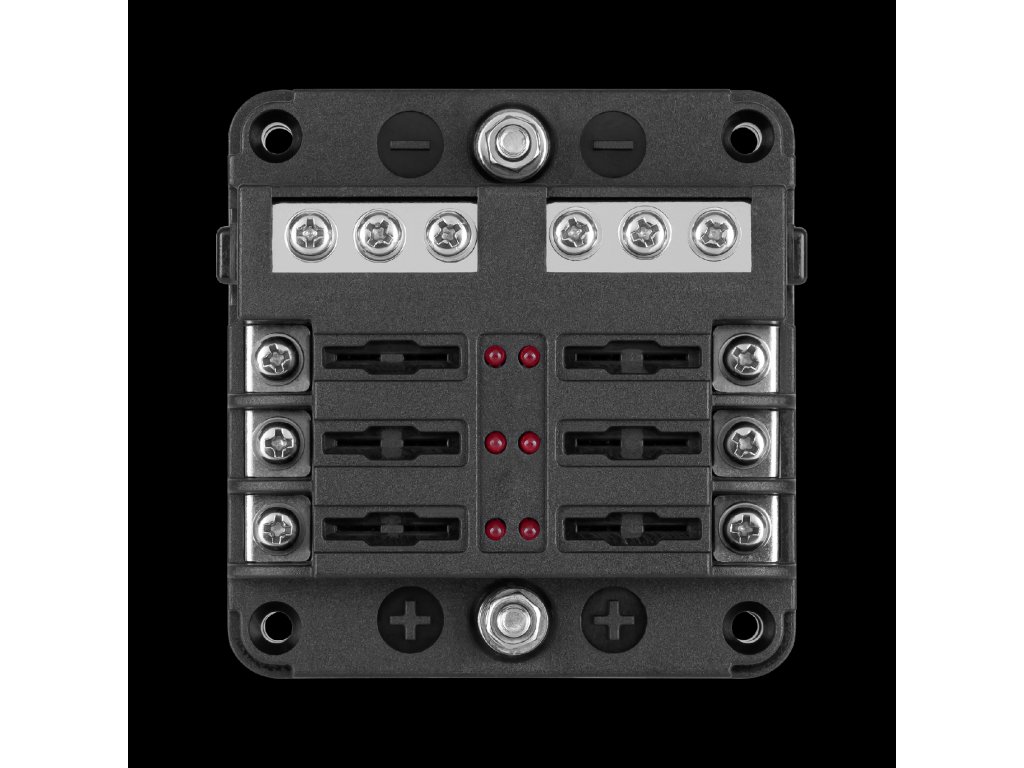 FB-6 biztosítékdoboz mínusz csatlakozóval és LED kijelzőkkel