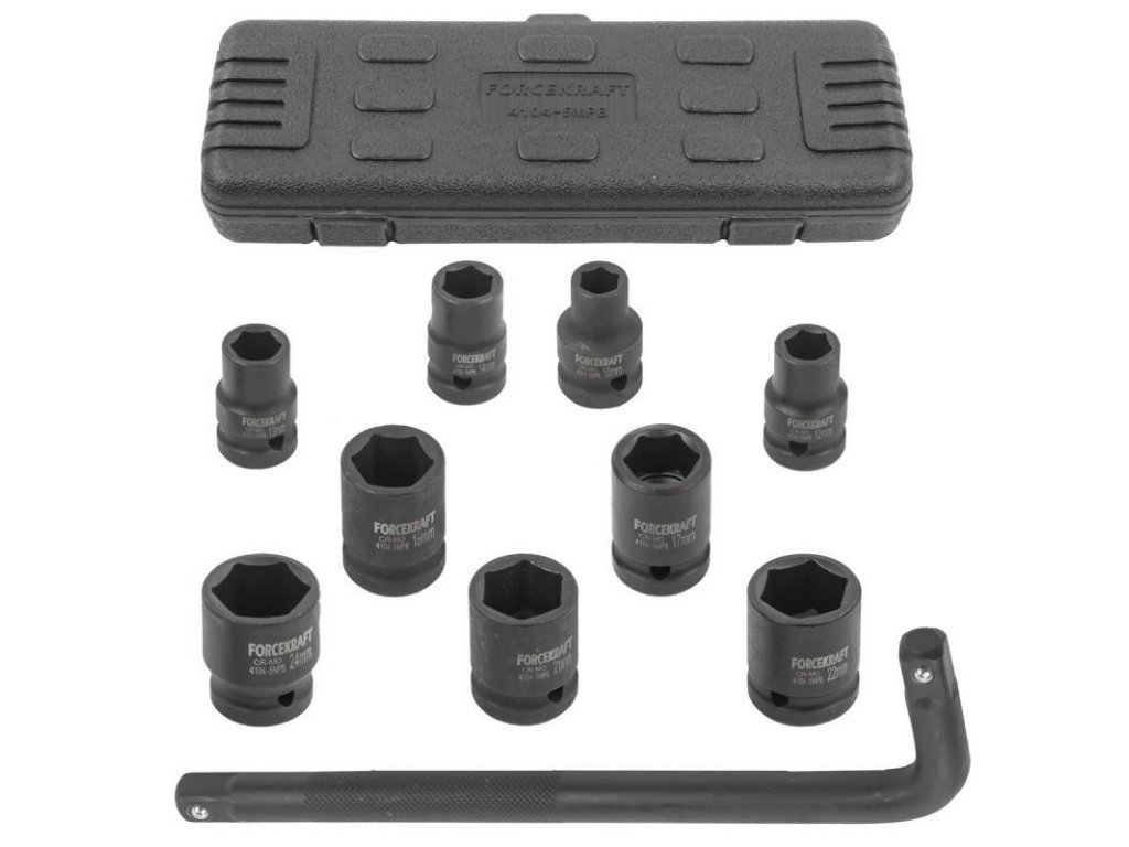 - 1/2" 6-szögletű dugókulcsok: 10, 12, 13, 14, 17, 19, 21, 22, 24 mm