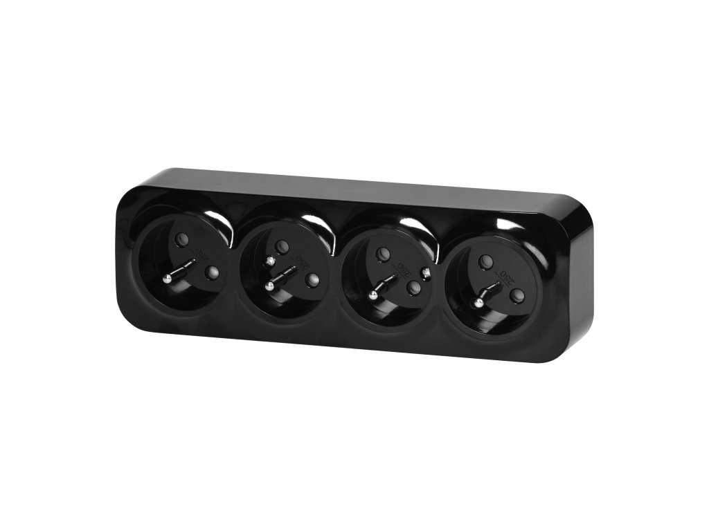 Fekete, fali, 4-es csatlakozó aljzat IP20, 16A, 230V