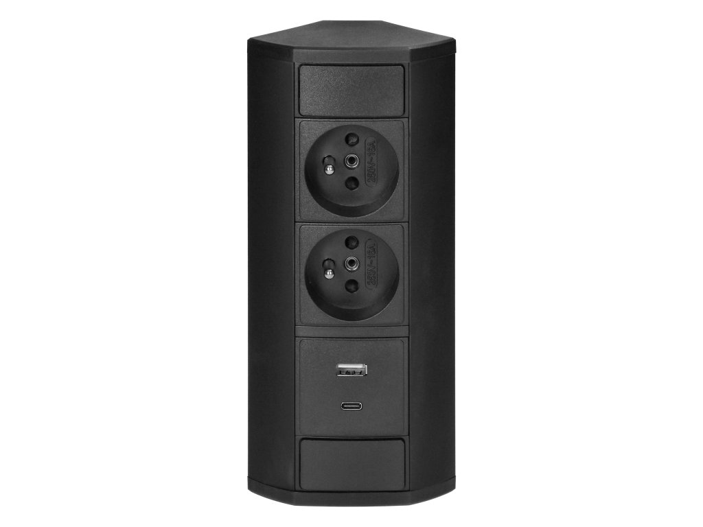 Fekete bútordugaszoló aljzat 2x220V+USB(A+C)