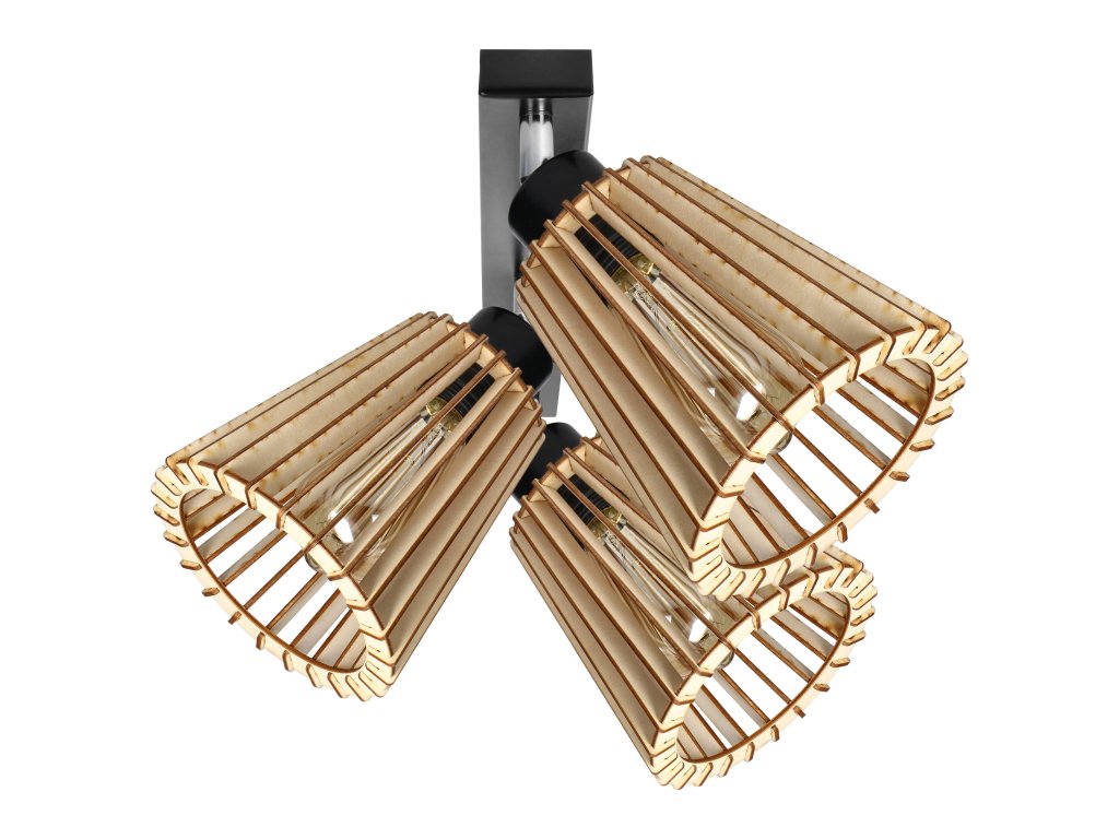 Fekete fa lámpa E27 3x60W mennyezet/fal