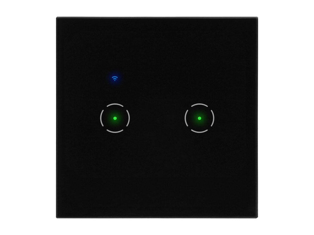 Fekete intelligens Wi-Fi fali kapcsoló 2-gangos