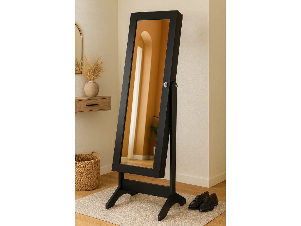 Keres egy praktikus és elegáns bútordarabot, amely lehetővé teszi az ékszerek és kiegészítők rendezését, miközben stílusos tükörként is funkcionál Ez a fekete ékszertartó tükörrel kiváló megoldás, amely ötvözi a funkcionalitást, esztétikát és kényelmet egyben!