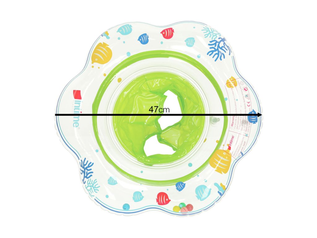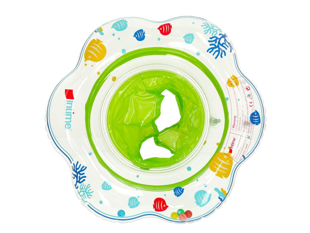 A kerék belsejében színes, csörgő labdák vannak, hogy még szórakoztatóbbá tegye a játékot, és ösztönözze a gyermeket az úszás megtanulására.