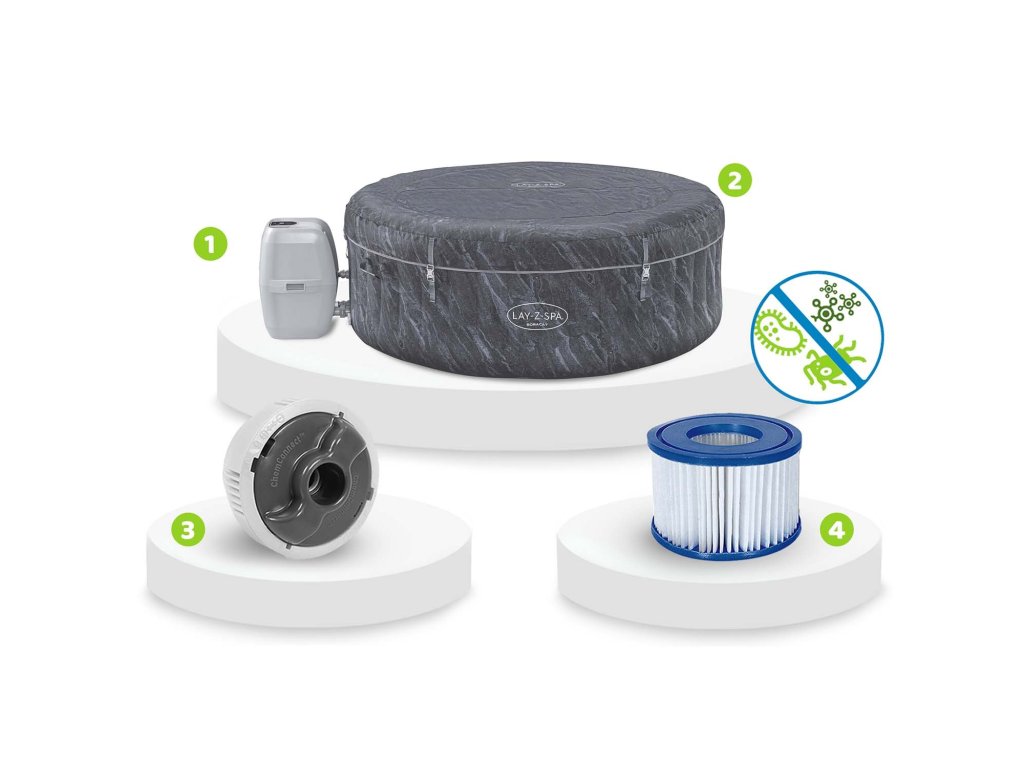 - Szűrő a szivattyúhoz, amely biztosítja a spa vízének tisztaságát. A szűrőt laboratóriumban tesztelték.