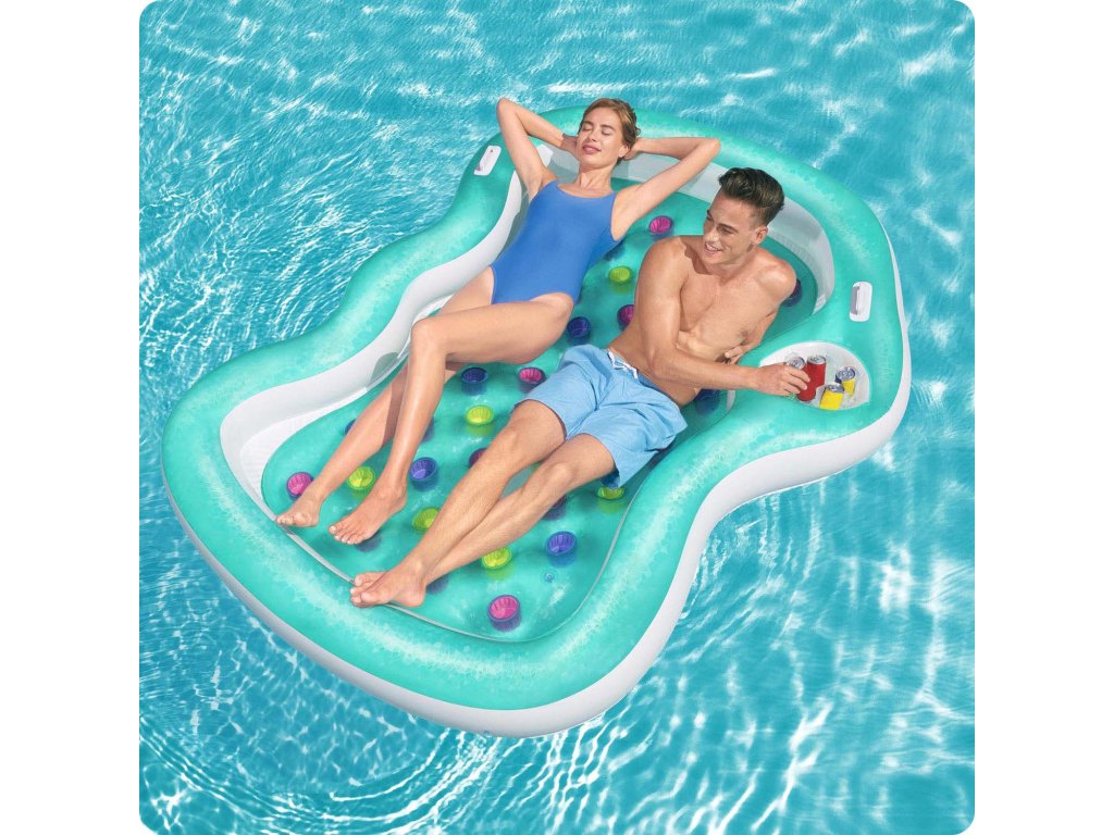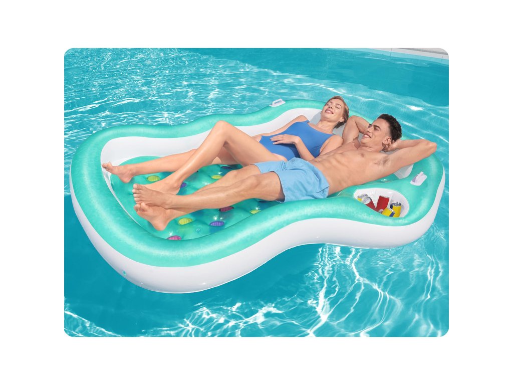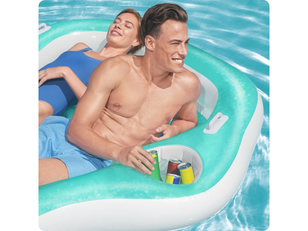 Kétszemélyes matrac a Bestway márkától, mérete 224 x 174 cm, italtároló és snack rekeszekkel.