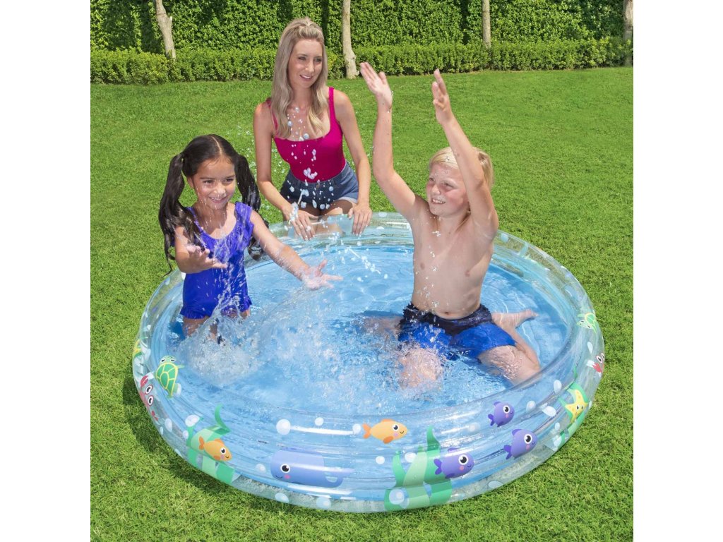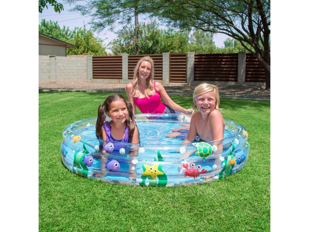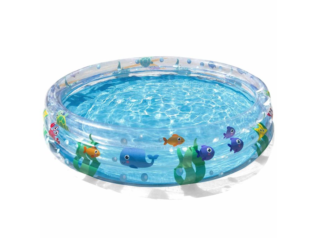 A színes halas átlátszó falakat 3 felfújható gyűrűből készítették.
