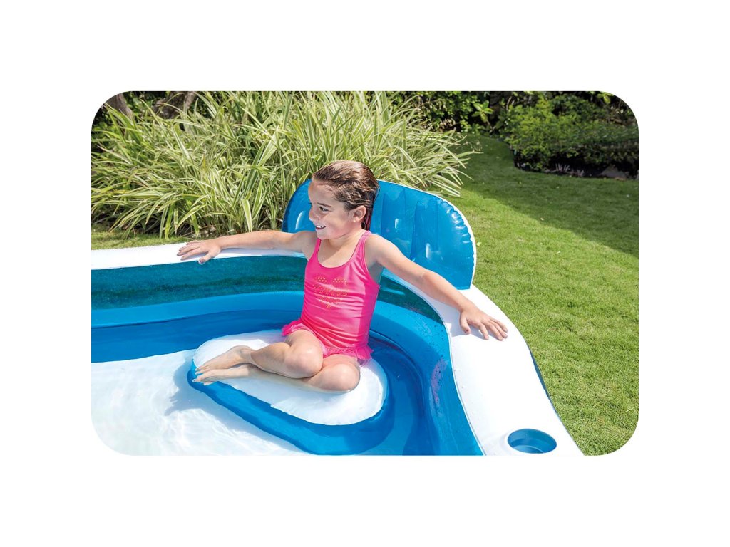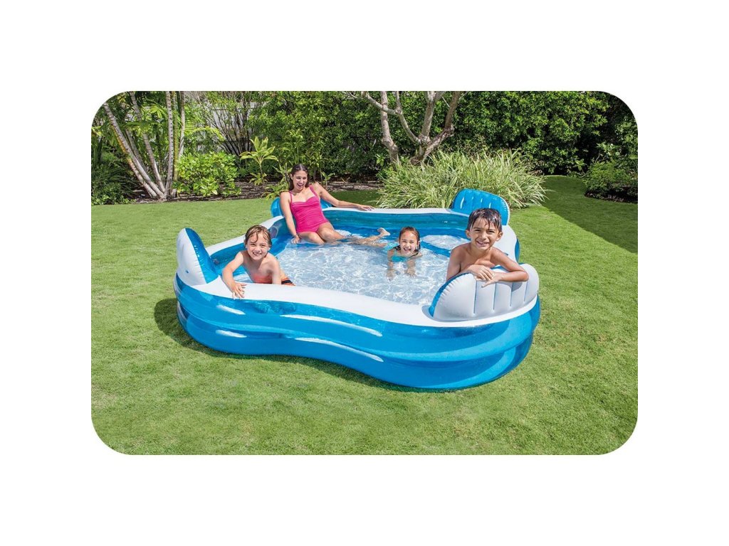 INTEX felfújható kerti medence ülésekkel olyan átgondoltan van kialakítva, hogy 229 x 229 x 69 cm-es méretei nemcsak gyermekek, hanem felnőttek számára is lehetővé teszik a használatát.