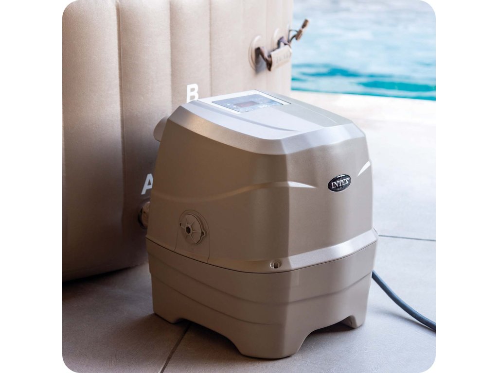 A kemény víz kristályait a szűrő felfogja, így puha víz marad a spa-ban.