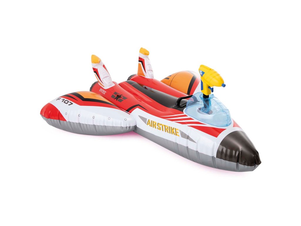 Samolot dmuchany z wodnym działkiem 117 x 117 cm Powietrzna przygoda w basenie! ? Niespotykany dmuchany materac w kształcie odrzutowca zachwyci każde dziecko. Wygodny do siedzenia kształt, mocny uchwyt i wytrzymały materiał PVC sprawiają, że materac super sprawdzi się podczas zabaw w wodzie. Odrzutowiec został wyposażony działko wodne. Twoje dziecko będzie mogło dzięki temu przeżyć fantastyczne bitwy wodne. Główne cechy: wygodny uchwyt działko wodne łatka naprawcza w zestawie Dane techniczne: Wymiary: 117 x 117 cm Materiał: PVC Waga: 0,955 kg Sugerowany wiek: od 3 latKiegészítő paraméterek