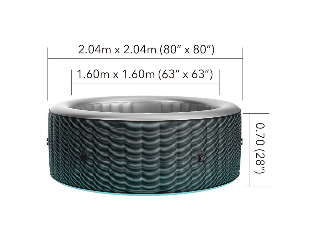 - Automatikusan felfújódó SPA kád 138 levegőfúvókával, beépített szűrőszivattyúval, UVC, PTC (minden egyben) méretekkel: 204 x 70 cm