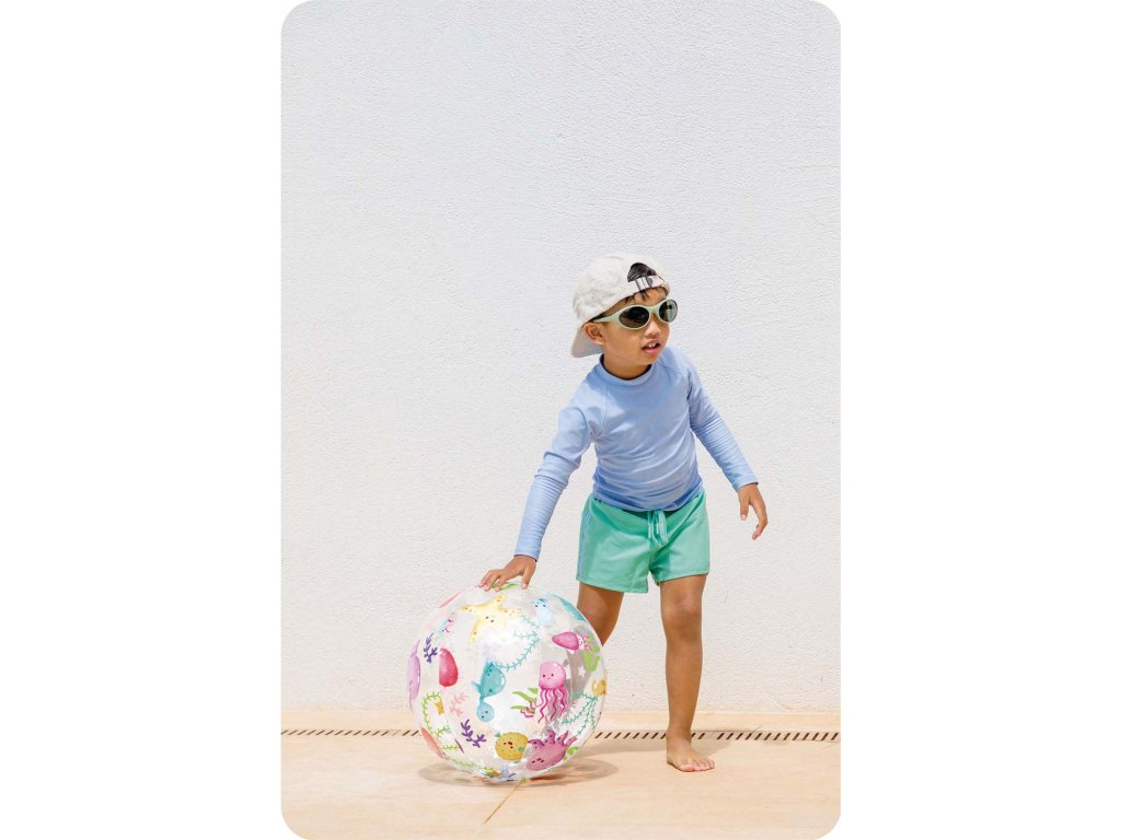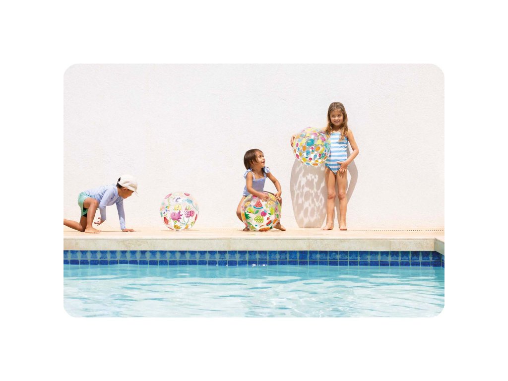 Lefújt állapotban kevés helyet foglal a csomagban, de sok szórakozást nyújt gyermekeknek és felnőtteknek. Színes mintája játékra ösztönöz, és biztosítja, hogy a labda jól látható legyen a homokon vagy a vízen.