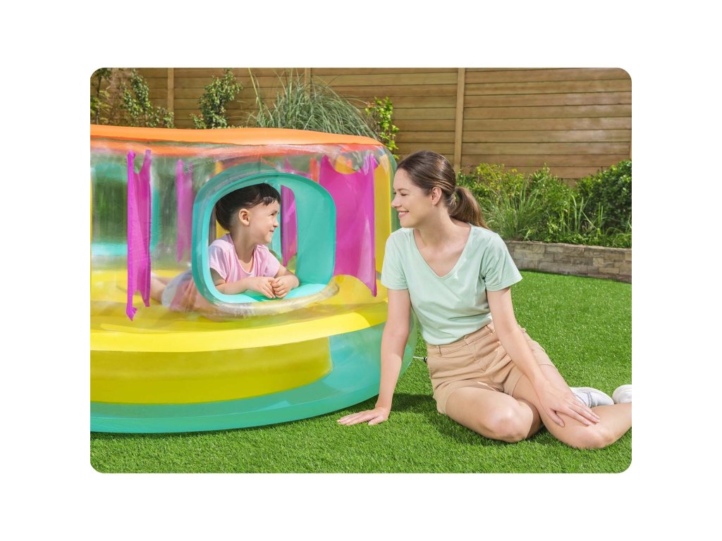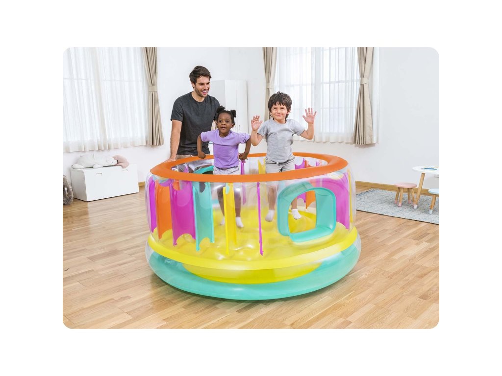 A Bestway felfújható trambulin fantasztikus szórakozást nyújt a 3 évesnél idősebb gyerekeknek. A saját mini kert készlet, amely 180 x 86 cm méretű, minden gyermek álma. Egy ilyen vásárlás után gyermeke imádni fogja a szabadtéri játékokat.
