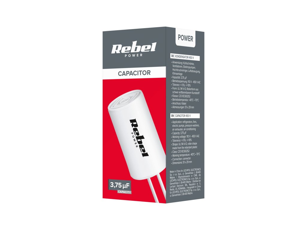 Alkalmazások: hűtőszekrények, ventilátorok, elektromos szivattyúk, mosógépek, ventilátorok, légkondicionálók Kapacitás: 3,75 uF Működési feszültség: 110 V - 450 V AC Tolerancia: