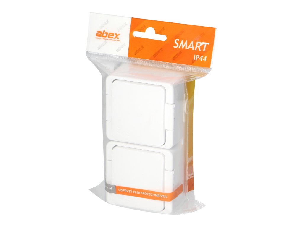 Felületre szerelhető, ##két## aljzatos ##dupla## csatlakozó 2x2P+E, fröccsenésálló burkolattal, IP44, SMART, fehérKiegészítő paraméterek