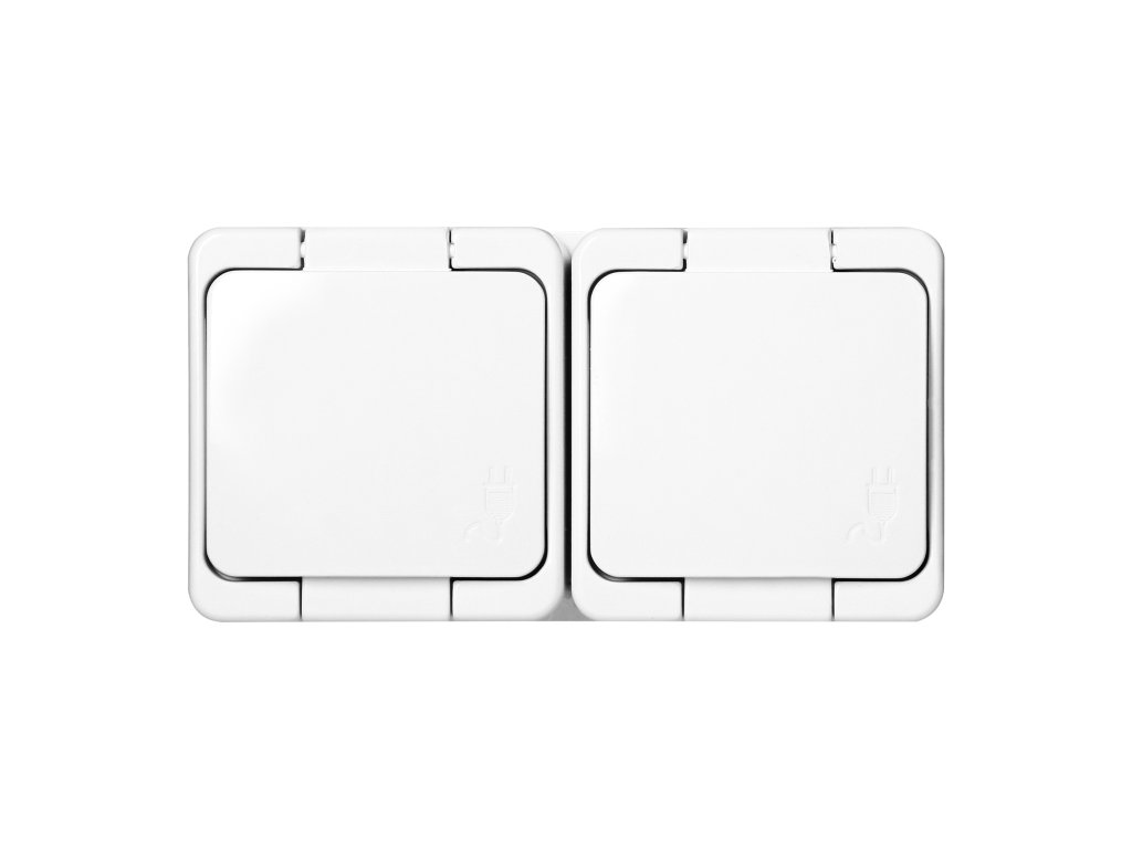 Felületre szerelhető dupla aljzat 2x2P+E, cseppálló fedéllel, IP44, SMART, fehér