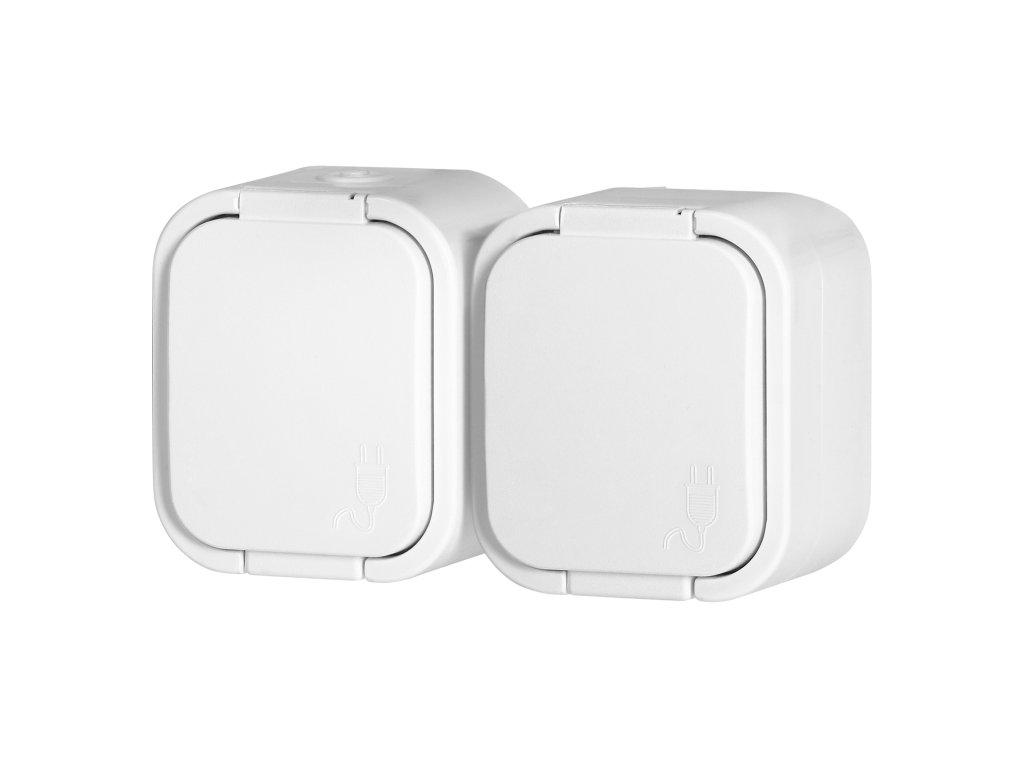Felületre szerelhető dupla aljzat 2x2P+E, fröccsenésálló fedéllel B2, IP54, NT-6B2, fehér