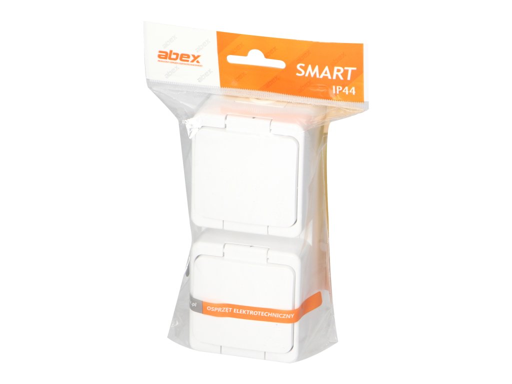 Felületszerelt dupla aljzat 2x2P+E, fröccsenő víz elleni védelemmel, fedéllel, függőleges, IP44, SMART, fehérKiegészítő paraméterek