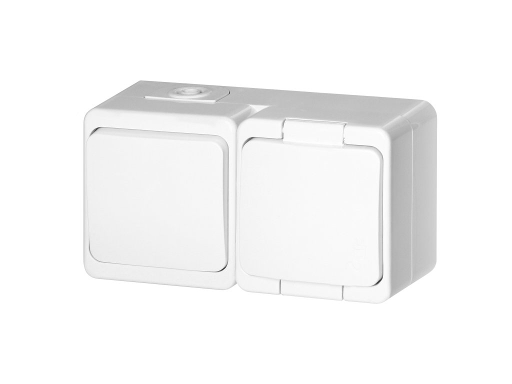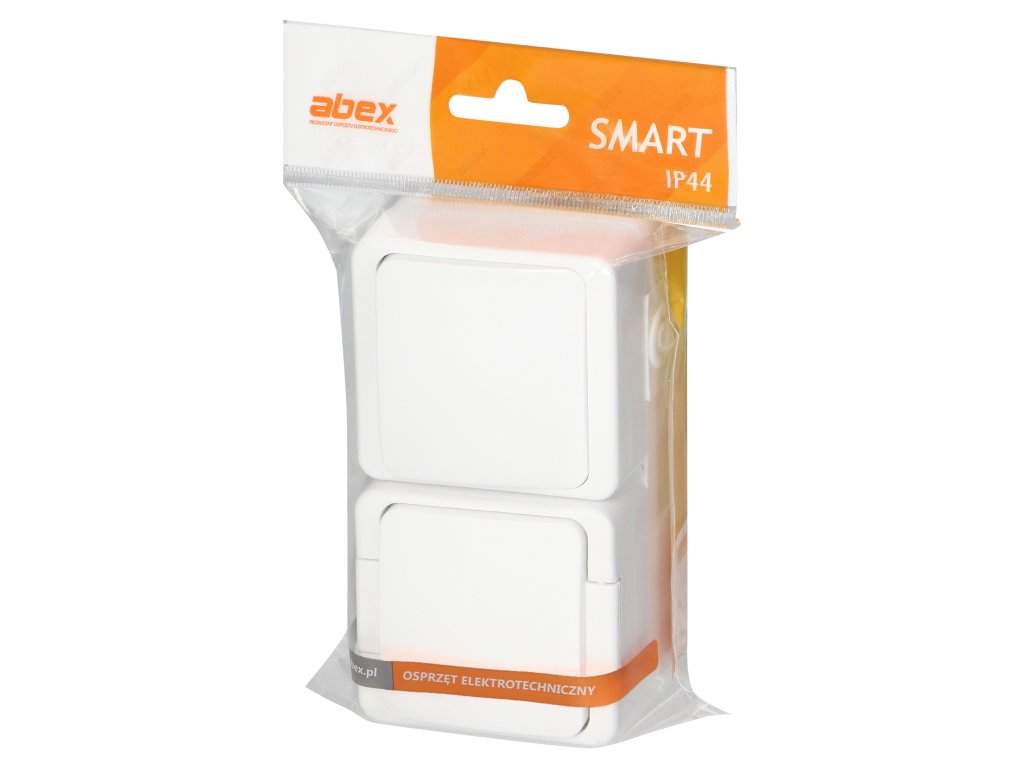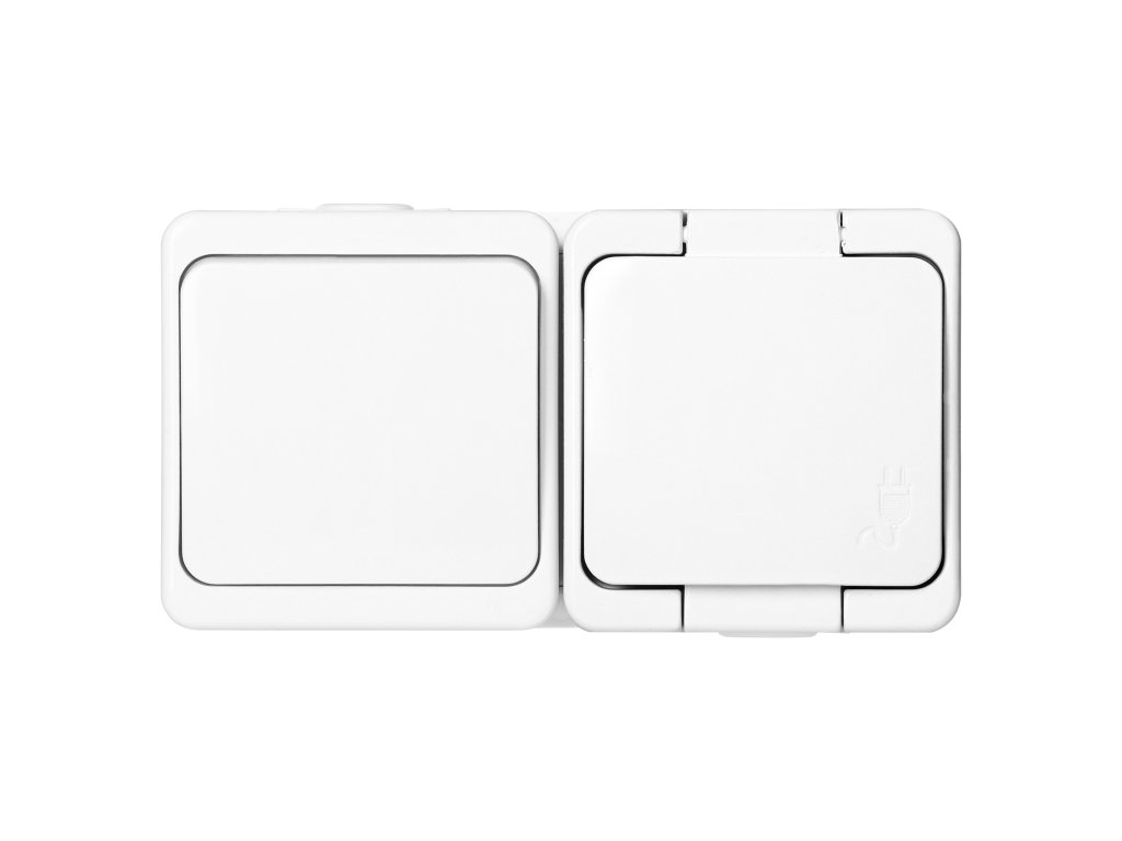 Felületre szerelhető egyes aljzat 2P+E fedéllel + egyáramkörös kapcsoló, IP44, SMART, fehér