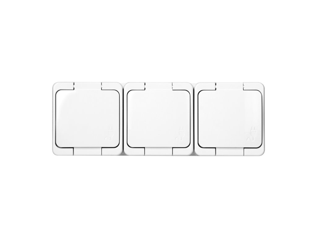 Felületre szerelhető hármas aljzat 3x2P+E, fröccsenésálló fedéllel, IP44, SMART, fehér