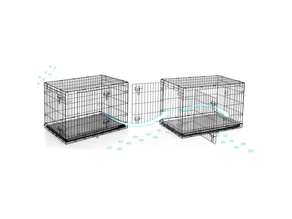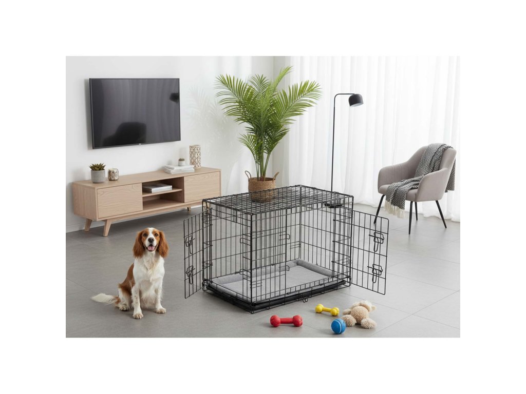 - Kétszárnyú ajtók — elöl és oldalt — lehetővé teszik a könnyű hozzáférést és a kennel elhelyezésének rugalmasságát.