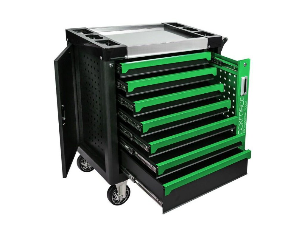 Hét tágas fiók lehetővé teszi a szerszámok, kiegészítők és anyagok rendezett tárolását, ami növeli a munkád hatékonyságát