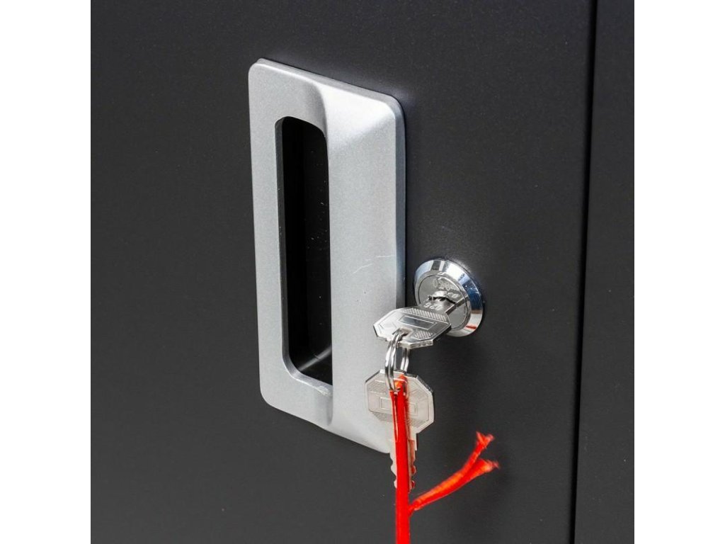 - Megerősített sínek és golyós csúszómechanizmus könnyíti meg a fiókok kihúzását. Minden fiók egyedi zárral is rendelkezik.