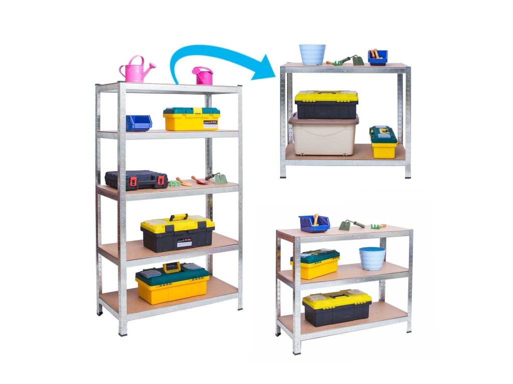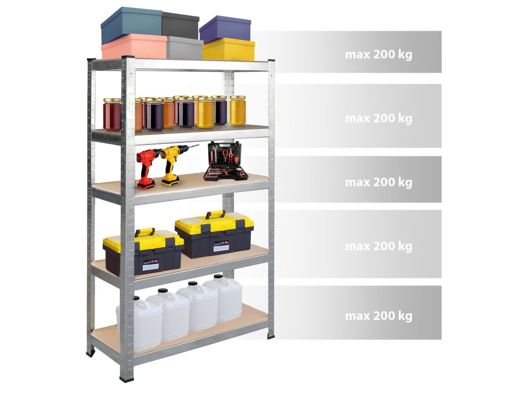 A polc 5 polcból áll, amelyekre termékeket, kartondobozokat vagy készülékeket helyezhet el, polconként legfeljebb 200 kg terheléssel.