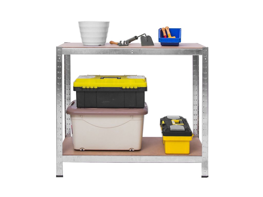 Funkcionális és stabil raktári polc ezüst színben, amely kiválóan alkalmas: