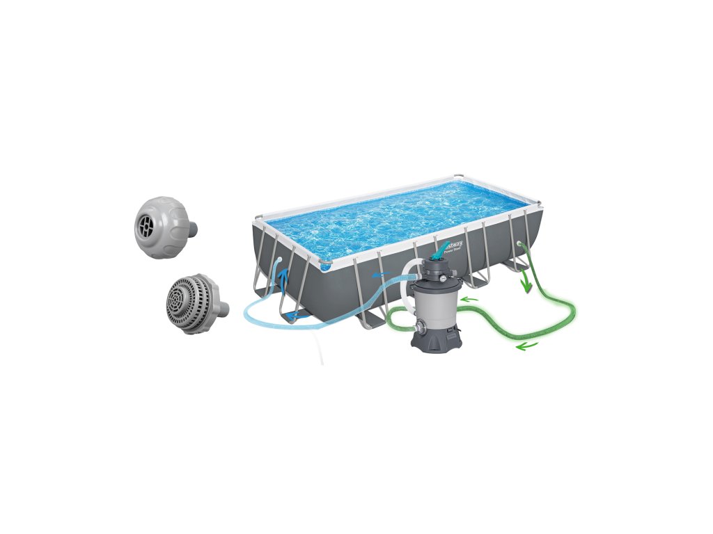 - Soha nem volt ilyen biztonságos a medence vegyszerezése! Az integrált, automatikus, áramlásos klóradagoló a medencében nem igényel kézi működtetést. Az eszköz a szivattyúval együtt működik, és egyenletesen osztja el a klórt a medencében.