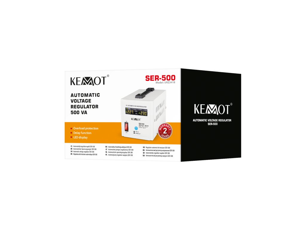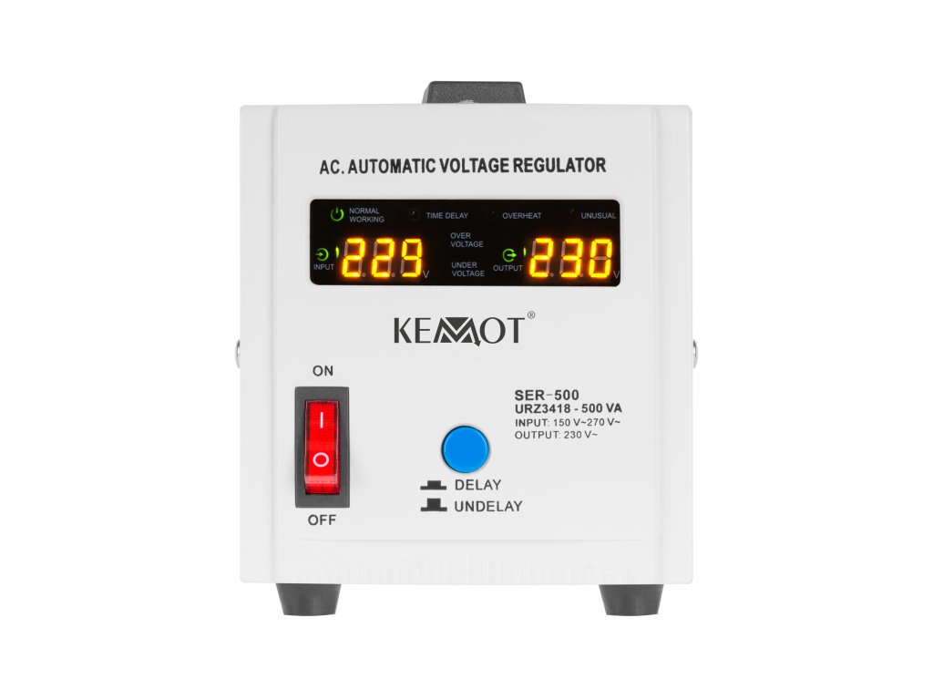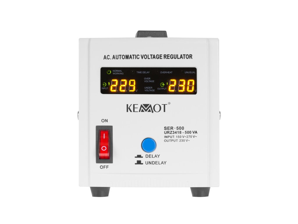 Az adatvesztés, a hirtelen leállás, a sérülés vagy a berendezés meghibásodása csak néhány az instabil feszültségek következményei közül. A Kemot SER-500 a hálózati terheléstől és a kimeneti feszültség ingadozásától függetlenül 230 V ±8%-on tartja azt, lehetővé téve minden eszköz hatékony működését, beleértve azokat is, amelyek érzékenyek a hálózati feszültség minőségére. A szabályozás automatikus, ami nagy kimeneti feszültségpontosságot biztosít. A SER-500 otthoni és irodai környezetben egyaránt alkalmazásra talál, ideálisan alkalmas audio/video berendezésekhez vagy számítógépekhez.